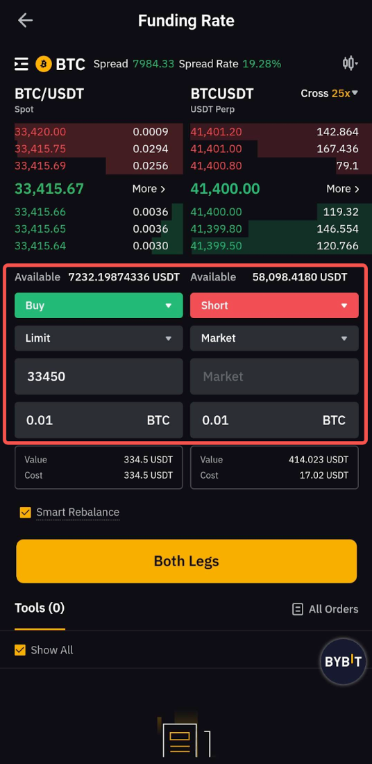 - Select Market or Limit Orders. When entering the order price, you can refer to the Funding Rate or Spread Rate next to the trading pair to gauge the arbitrage cost.