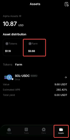 If you're using the Bybit App, simply go to Bybit Alpha homepage → Assets → Farm.
