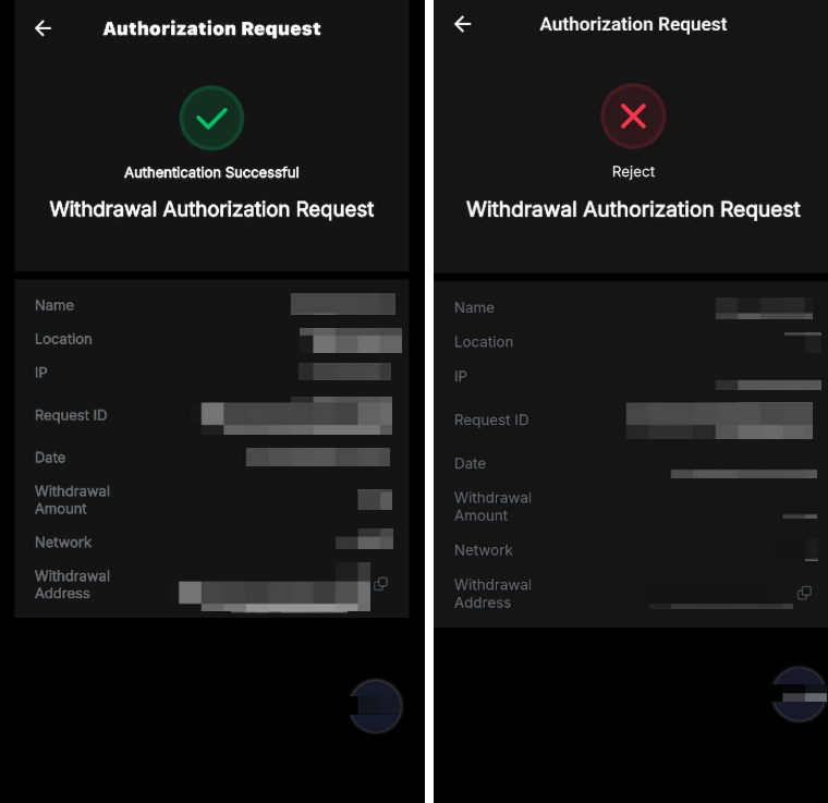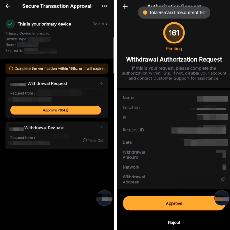 Step 3: On your primary device, review the transaction details in the verification request, then tap Approve to confirm or Reject if you don't recognize the transaction.