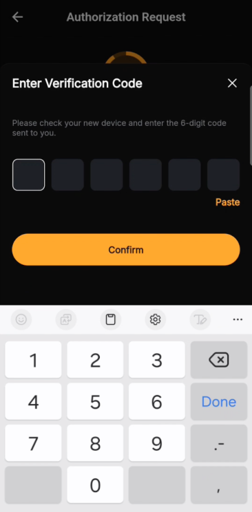 Step 2: Tap Confirm to receive a 6-digit verification code on your Bybit App on your secondary device.