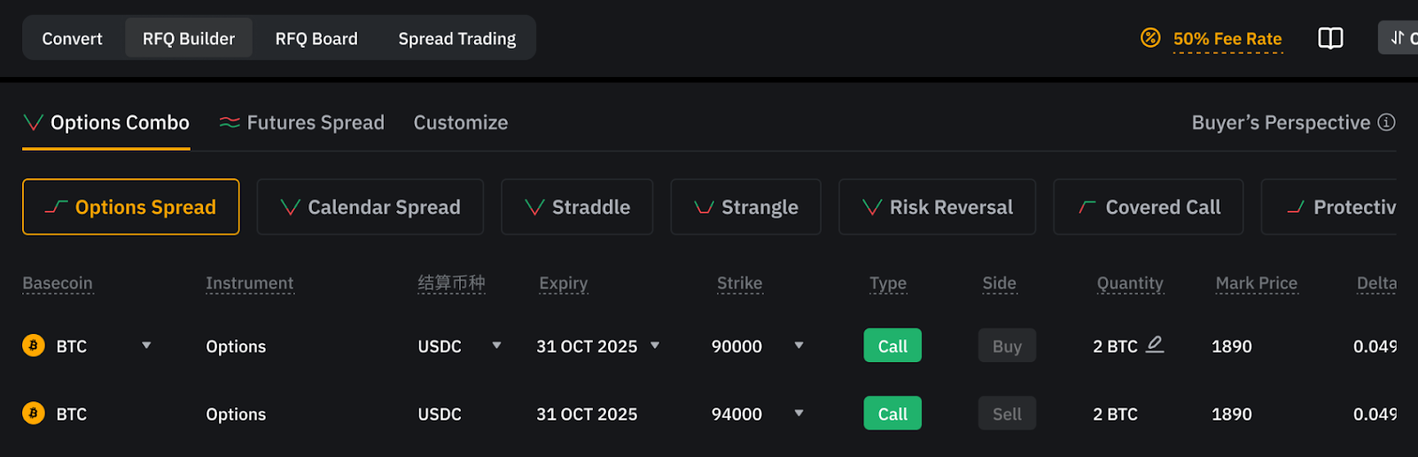 — A 50% discount applies to base fees on combo trades under the Options Combo and Futures Spread tabs, but not on customized strategies.