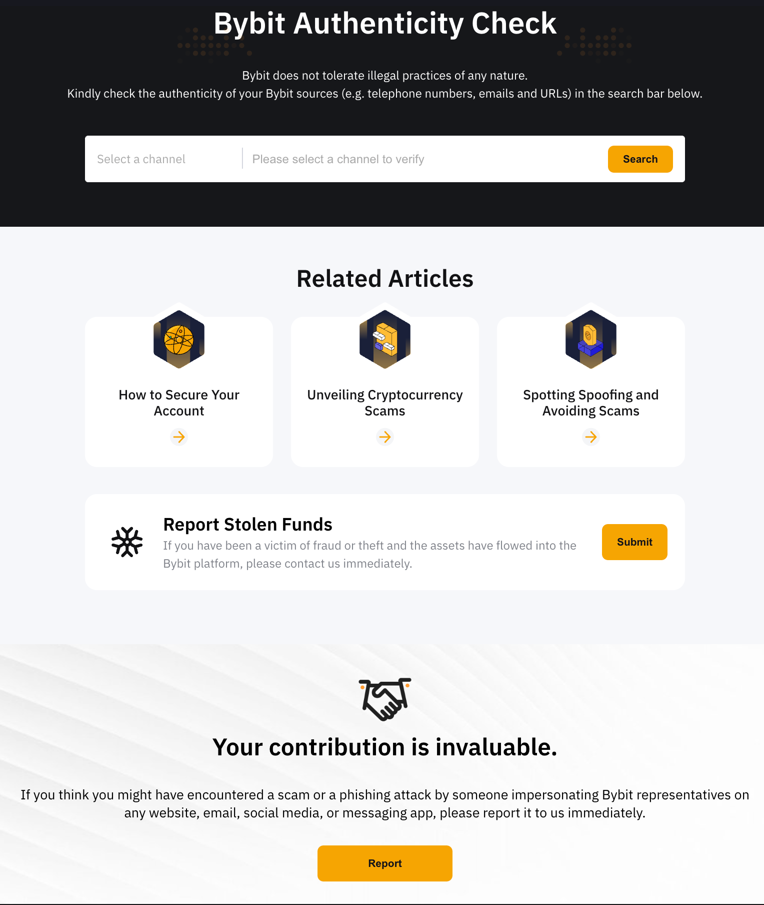 You can easily check whether the sources are from Bybit by using our Authenticity Checker to verify their authenticity. Simply select the channel type and fill in the details to get the result.