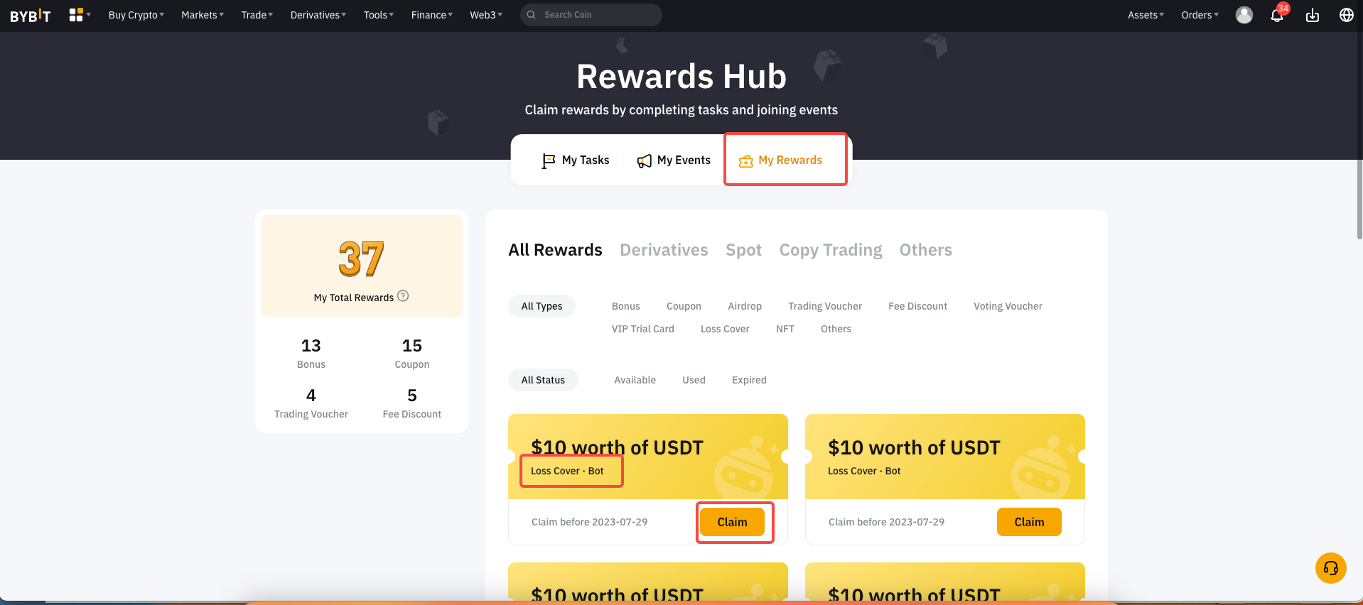Note: The applicability of the Loss Cover Voucher may vary depending on the type of trading bot. Please check the reward details for specifics.