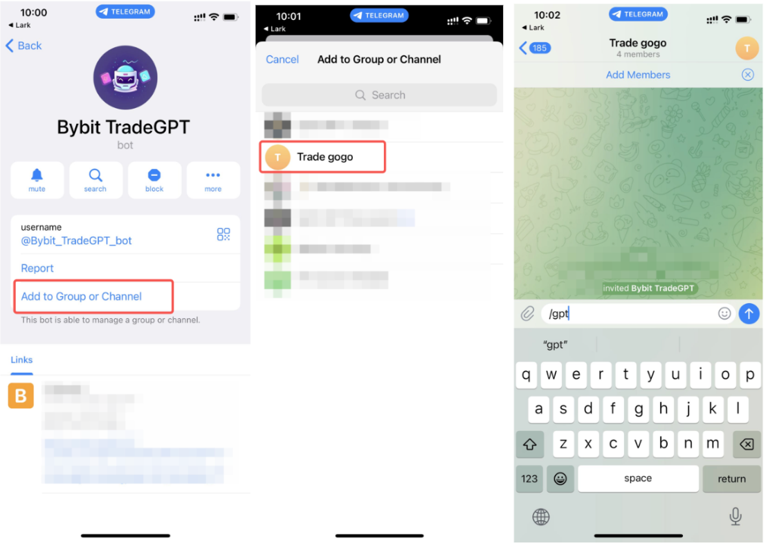1. Click on Add to Group or Channel on the Bybit TradeGPT Info page.