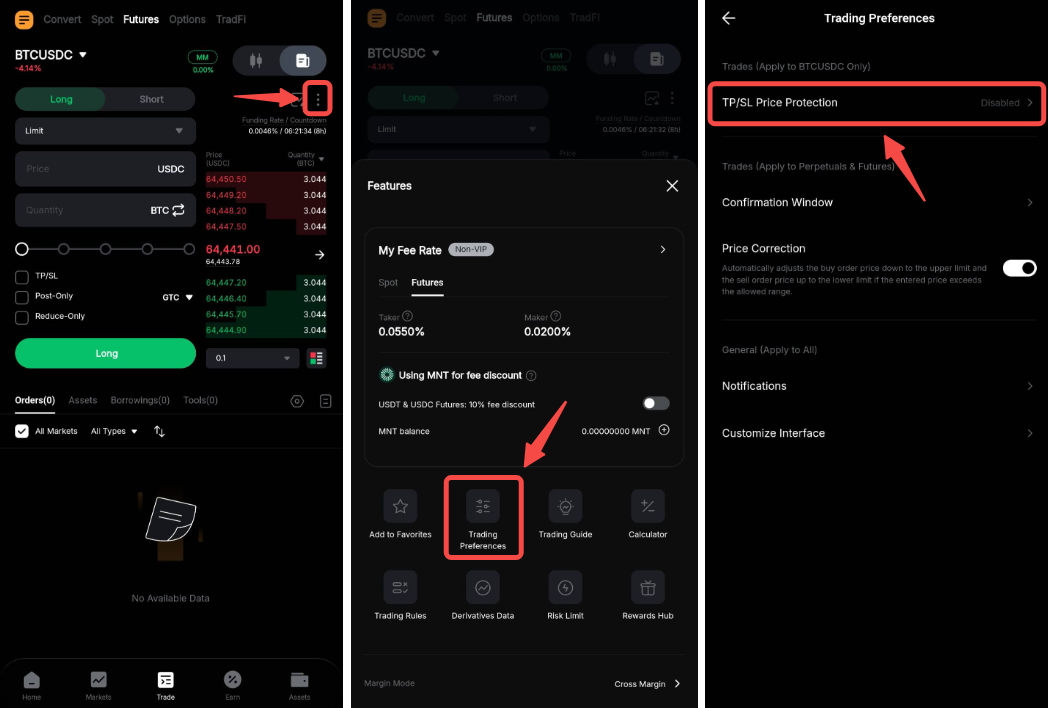 TP/SL Price Protection is specifically designed for setting TP/SL using the Last Traded Price (LTP) as the trigger reference price on Perpetual and Futures Contracts. The Price Protection settings will not apply to TP/SL orders using Mark Price or Index Price as the trigger reference. Orders placed via API won’t be affected by the Price Protection function.